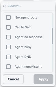 The inbound call was ended either because it went to a non-Agent call flow option (Disconnect, Play Audio, Voicemail) or because the caller hung up before they were transferred to an Agent (during a greeting, voice menu (IVR) instructions or after entering incorrect details in the Dial by Name option).