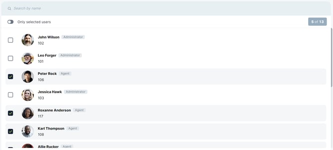 Here you can select the Agents who will be participating in the outbound campaign and handling calls within it. All current users within the account are listed here.