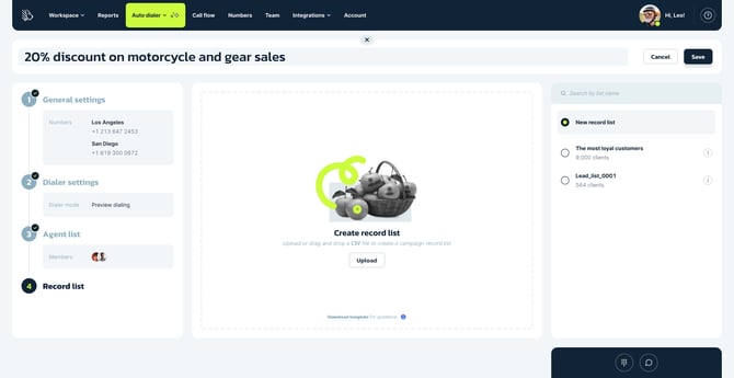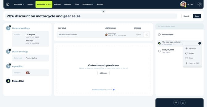 Unlimited Auto Dialer functionality is available in the Power & Enterprise plans. Users on the Core/Pro plan can create up to 3 campaigns with a list of contacts up to 100 records each.