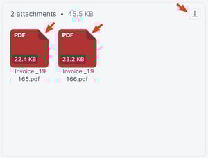 You can download the attachments separately by clicking on each of them, or all of them in a ZIP file by clicking on the download icon in the upper right corner of the pop-up: