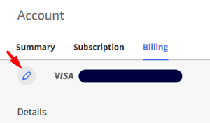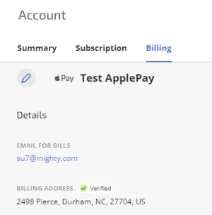 - To switch to a different payment method or update your Apple Pay information, navigate to Account → Billing and click on the pen icon next to your current payment method to edit your billing information.